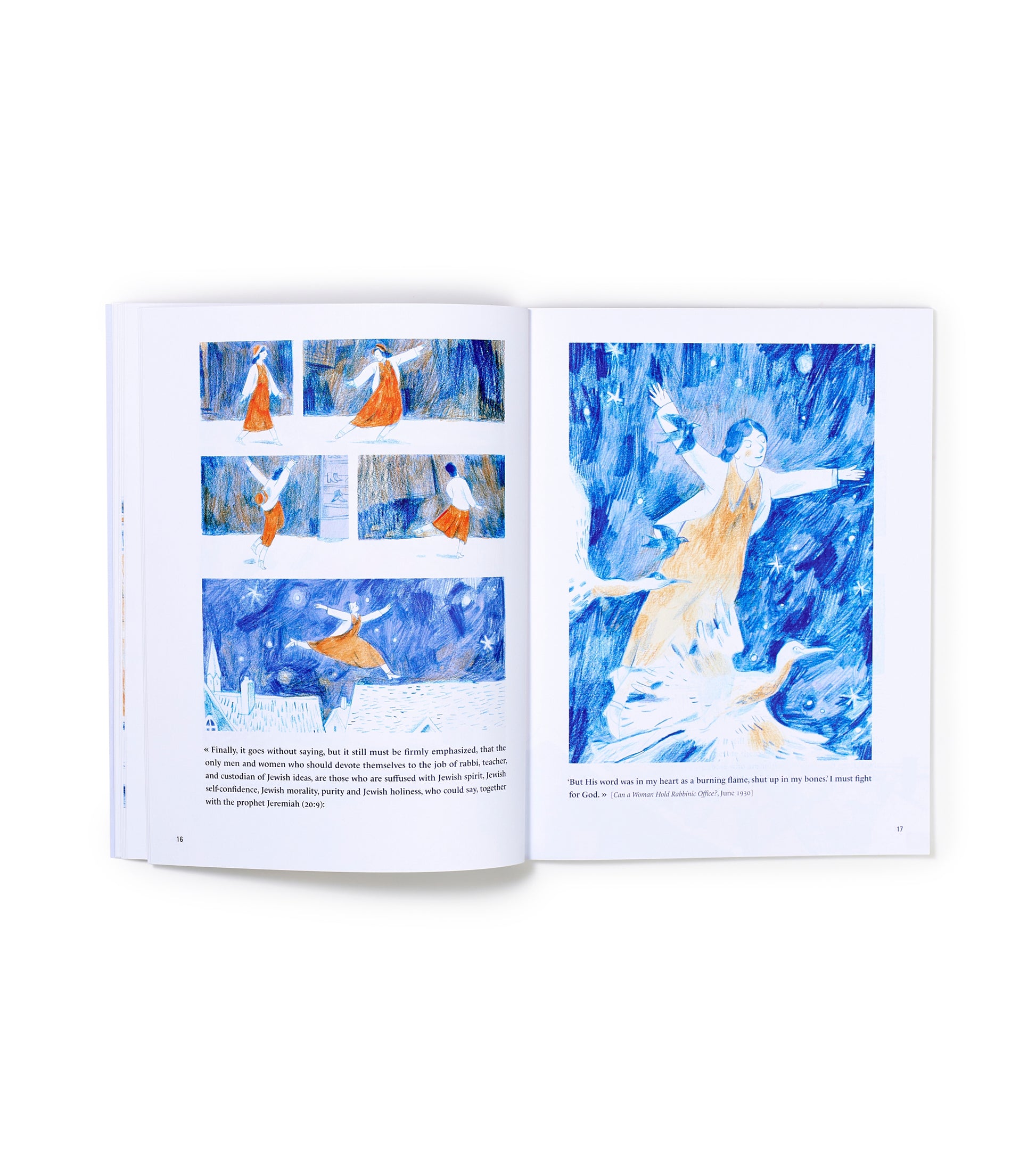 As a Burning Flame: The Dream of Regina Jonas is a graphic novel exploring the life and impact of the first female ordained rabbi in Ashkenazi Jewish history. Regina Jonas (1902–1944) was active in prewar Berlin and later in the Theresienstadt ghetto as a community leader, lecturer, and organizer, until her murder at Auschwitz. As a Burning Flame recounts Regina's story through creatively woven fragments of her own writing and Noa Mishkin’s meditative and imaginative illustrations. The novel then turns to explore where Regina’s story intersects with Noa’s own, as a young religious feminist searching for her own path. Written for readers of any religious background, As a Burning Flame aims to introduce its audience to this long-forgotten chapter of Jewish feminist history, and to inspire conversation about evolving female religious identities in our own time.