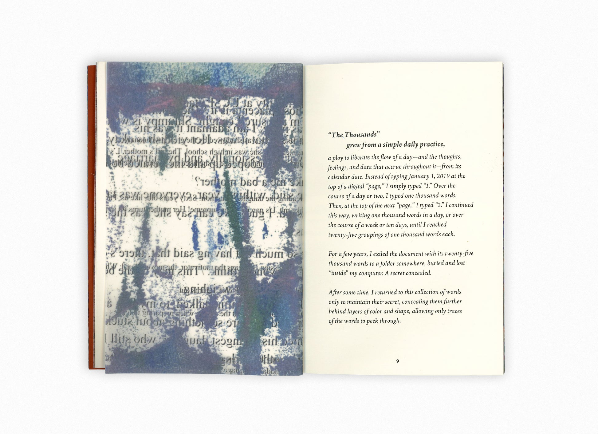 “The Thousands is beautiful, very—sharp, spontaneous, careful and carefree at once, a little solicitous, always inviting, also defiant—taking care to point its restlessness toward tenderness. As a meditation on the problem of presence it is especially bright. Presence: all we have, and always escaping us. And the paintings/drawings/writings—each is part palimpsest and part pentimento—they are perfect with the text, and add a tactile sensuality to the book. They are the book’s translucence, literally.”