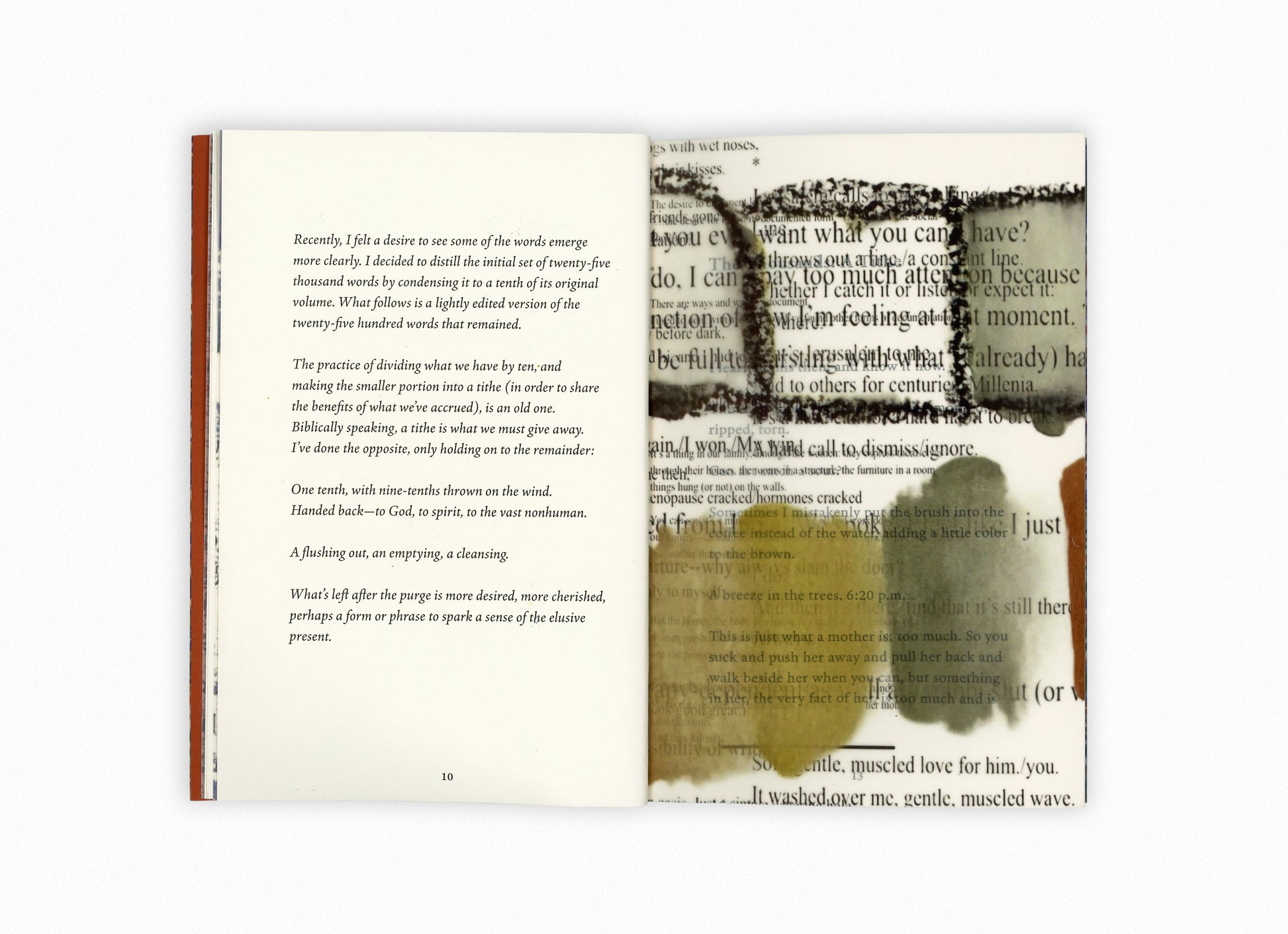 For some time, the artist and poet Anne Germanacos set herself a simple task: to write texts of exactly one thousand words each, moving forward without looking back. Later, she returned to divide the initial twenty-five thousand words by ten, making the smaller portion into a tithe, and releasing the rest.