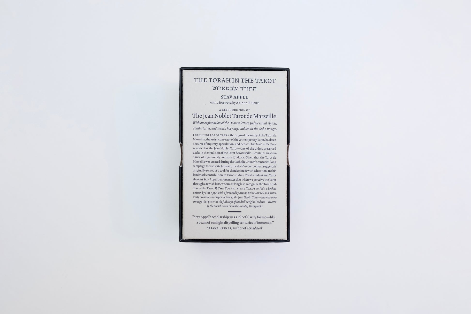 The Torah in the Tarot includes a booklet written by Stav Appel with a foreword by Ariana Reines, as well as a historically accurate, 78-card color reproduction of the Jean Noblet Tarot—the only modern copy that preserves the full scope of the deck’s original Judaica—created by the French artist Florent Giraud of Tarotgraphe.